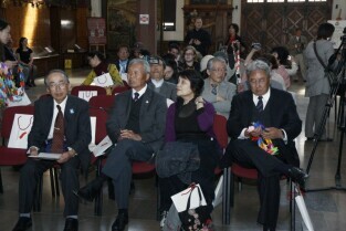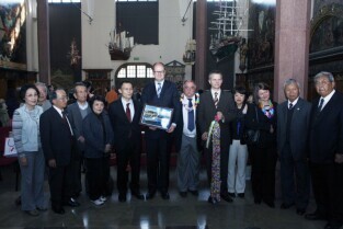 Gdańsk gościł grupę Japończyków zrzeszonych w organizacji Peace Boat (Statek Pokoju). Przekazanie 1000 żurawi origami. Nz. Po lewej z-ca dyrektora Muzeum II Wojny Światowej Dr Janusz Marszalec, po prawej Świadek wybuchów atomowych w miastach Japońskich, hibakusha Takayoshi Kajiyama