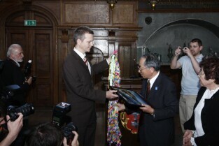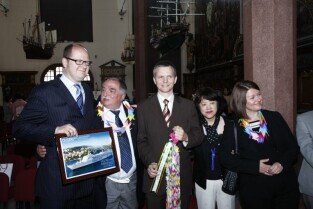 Gdańsk gościł grupę Japończyków zrzeszonych w organizacji Peace Boat (Statek Pokoju). Nz. wspólne gości z Prezydentem Gdańska Pawłem Adamowiczem, Zbigniewem Lisem oraz Dr Januszem Marszalec
