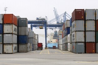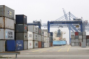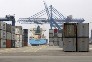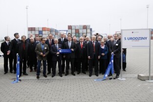 Konferencja prasowa z okazji piątych urodzin terminala kontenerowego DCT połączona z otwarciem dodatkowej powierzchni składowej. Gdańsk Stogi.
