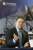 Konferencja prasowa z okazji piątych urodzin terminala kontenerowego DCT połączona z otwarciem dodatkowej powierzchni składowej. Gdańsk Stogi. Nz. Dyrektor Zarządzający DCT Gdańsk Boris Wenzel