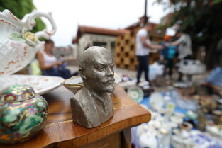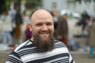 Gdańsk. Piąty rok działalności pchlego targu w Oliwie. Nz. Organizator Michał Bojanowski.