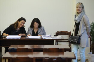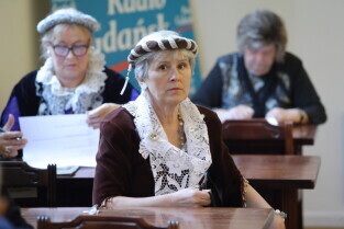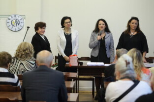 Gdańsk. I Ogólnopolska Olimpiada Wiedzy Obywatelskiej "Senior Obywatel" Pierwsze Gdańskie Eliminacje o Puchar Prezydenta Gdańska. Nz. Barbara Badowska-Średniawa-Przewodnicząca Prezydium DP-OPS, Posłanka Małgorzata Chmiel, Dr. Katarzyna Kamińska-Korolczuk i Dr. Margot Stańczyk-Minkiewicz.