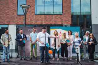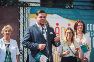 Gdańsk. Pierwsza Parada i Piknik Seniorów. Nz. Członek Zarządu Woj. Pomorskiego Piotr Orłowski