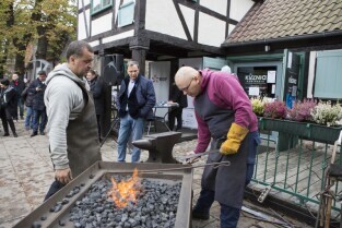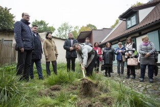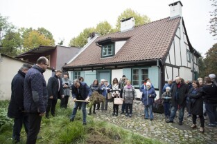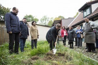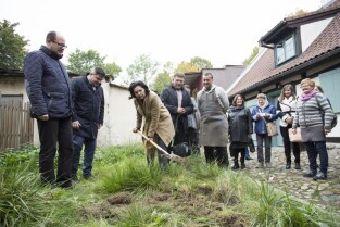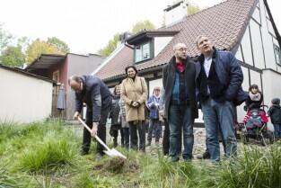 Gdańsk Orunia, ul. Gościnna. Wbicie pierwszej łopaty pod rozbudowę Centrum Innowacji i Aktywizacji Społecznej, w ramach której powstanie budynek edukacyjno-wystawienniczy z kuźnią