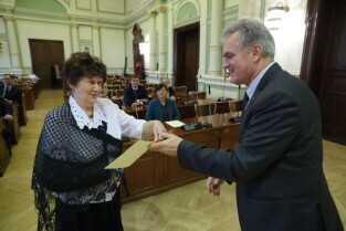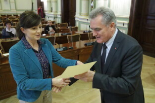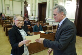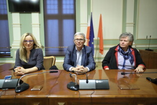 Gdańsk. Pierwsza sesja Rady Dzielnicy Zaspa-Rozstaje. Nz. Agnieszka Owczarczak - Wiceprzewodnicząca Rady Miasta Gdańska, Radni: Andrzej Kowalczys i Teresa Wasilewska.