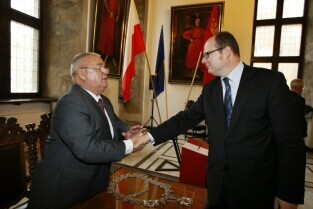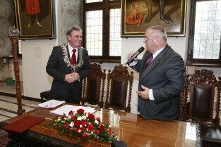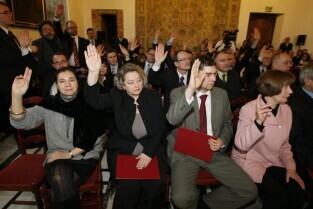 Pierwsza, inaugurująca, sesja Rady Miasta Gdańska szóstej kadencji 2010-2014. Podczas sesji wybrano m.in. Przewodniczącego Rady, którym został Bogdan Oleszek. Gdańsk, Ratusz Głównomiejski.