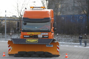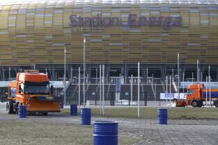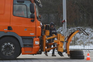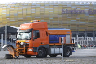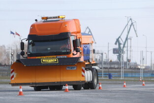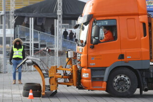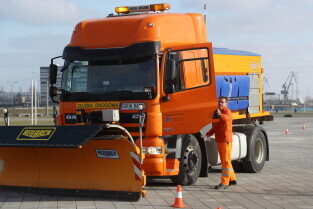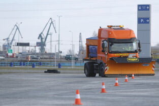 Gdańsk. Pierwsze w Polsce zawody pługów śnieżnych. Impreza organizowana w ramach XV Międzynarodowego Zimowego Kongresu Drogowego.