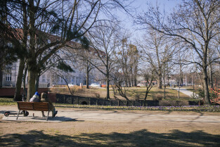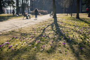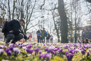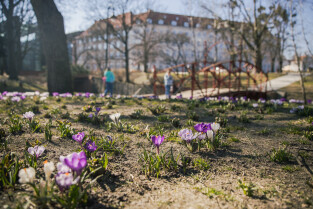Pierwsze wiosenne kwiaty w Gdańsku. Nz. Skwer im. Polskich Harcerzy