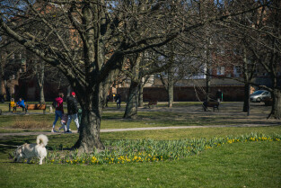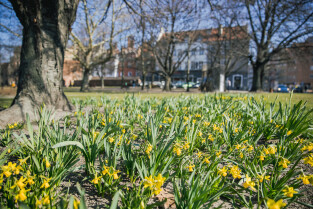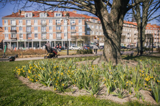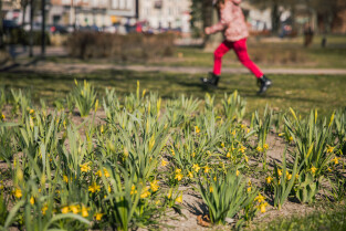 Pierwsze wiosenne kwiaty w Gdańsku. Nz. Plac im. Dariusza Kobzdeja