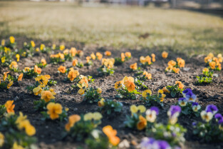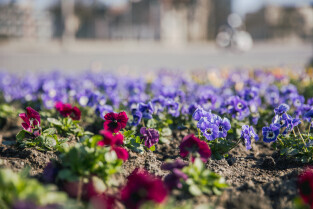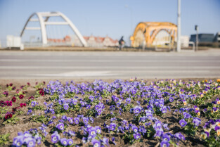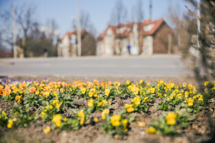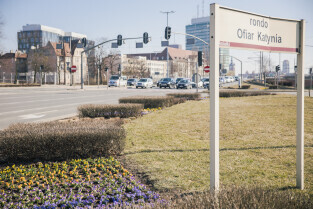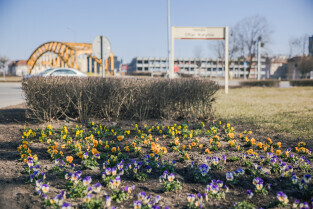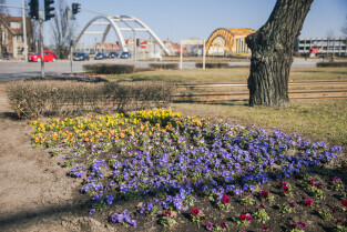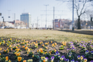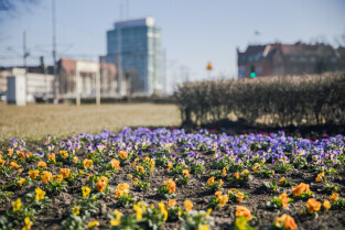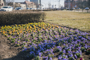 Pierwsze wiosenne kwiaty w Gdańsku. Nz. Rondo Ofiar Katynia