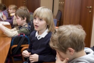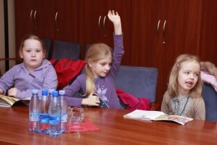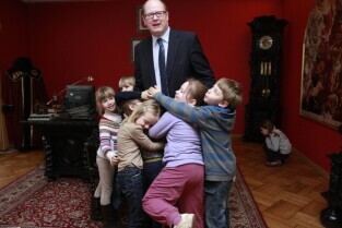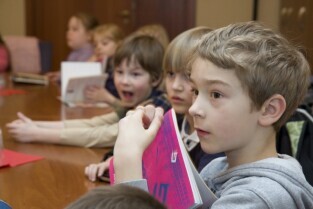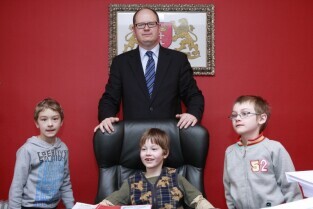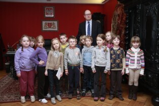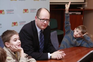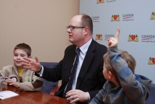 Urząd Miejski w Gdańsku. Wizyta pierwszoklasistów ze Szkoły Podstawowej nr 3 w Oliwie u Prezydenta Gdańska Pawła Adamowicza.