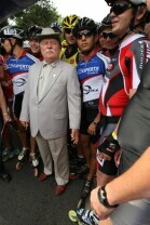Gdańsk. Pierwszy Maraton Sierpniowy, czyli wyścig rolkarzy ulicami Gdańska. Nz. Lech Wałęsa na starcie wśród rolkarzy