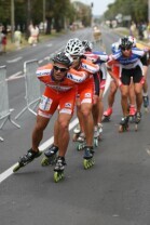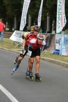 Gdańsk. Pierwszy Maraton Sierpniowy, czyli wyścig rolkarzy ulicami Gdańska. Nz. Lech Wałęsa i Prezydent Gdańska Paweł Adamowicz