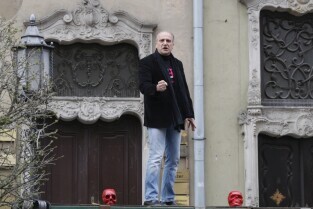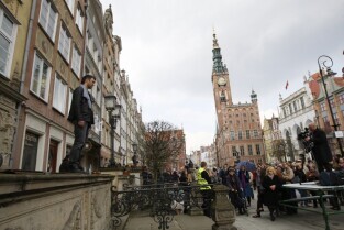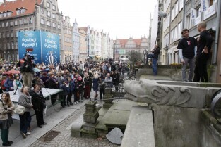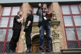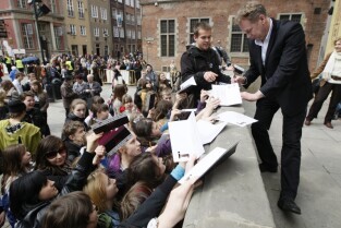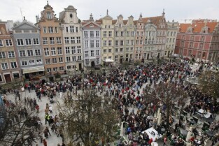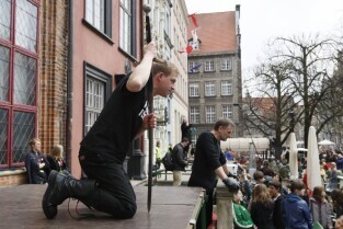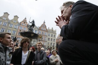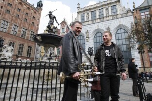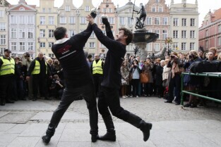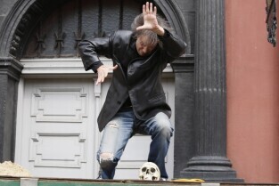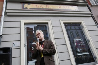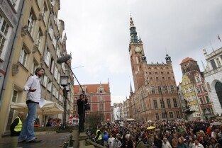 Gdańsk, Długi Targ. Pierwszy Zjazd Polskich Hamletów w reż. Andrzeja Wajdy. Występ blisko 30 polskich aktorów, którzy mają w swoim dorobku rolę Hamleta. Happening nawiązuje do średniowiecznych i renesansowych wędrownych artystów teatralnych.