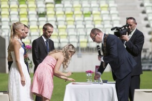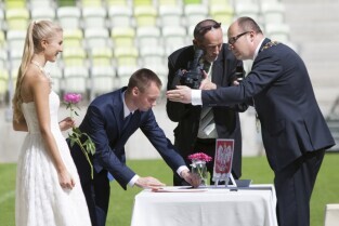 Pierwszy w historii ślub na stadionie PGE Arenie w Gdańsku Letnicy. Związek małżeński zawarli Inga Szwarc i Konrad Dmoch w obecności Prezydenta Gdańska Pawła Adamowicza