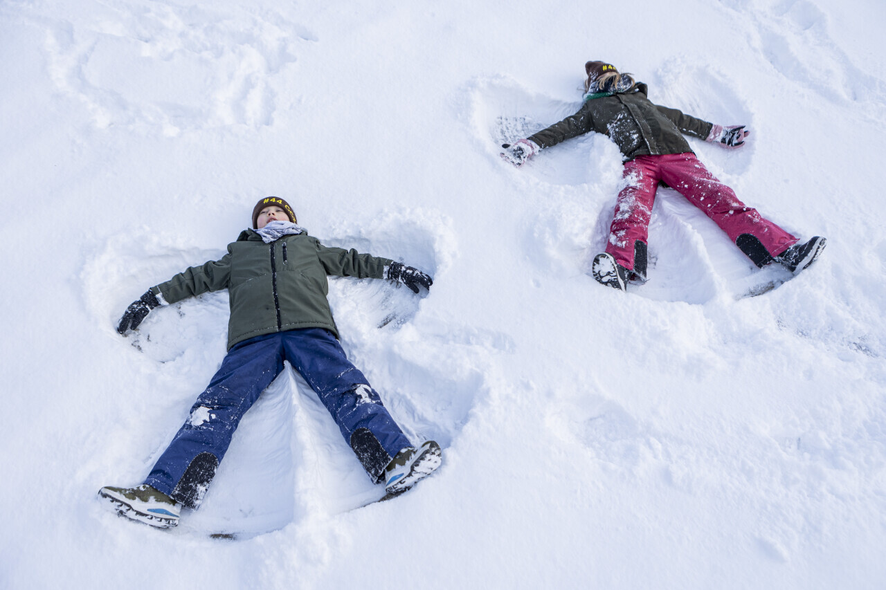 Gdańsk. Po obwitych nocnych opadach śniegu dzieci jeżdżą na sankach w dzielnicy Piecki-Migowo. Nz. Aniołki na śniegu