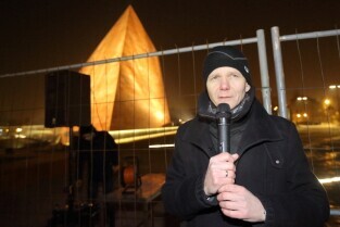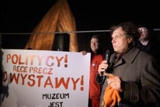 Gdańsk. Około 200 osób w tym politycy opozycji, demonstrowało przed Muzeum II Wojny Światowej w Gdańsku. Nz. Wicedyrektor Muzeum II Wojny Światowej dr. Janusz Marszalec.