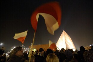 Gdańsk. Około 200 osób w tym politycy opozycji, demonstrowało przed Muzeum II Wojny Światowej w Gdańsku.