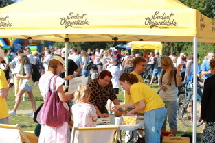 Piknik rodzinny z Budżetem Obywatelskim na deptaku prowadzącym do molo w Brzeźnie