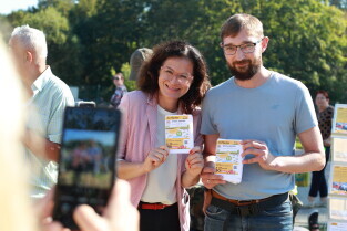 Gdańsk. Piknik rodzinny z Budżetem Obywatelskim na deptaku prowadzącym do molo w Brzeźnie.