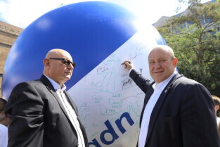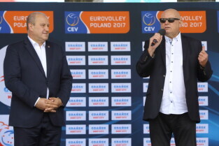 Gdańsk. Piknik siatkarski przed mistrzostwami Europy w siatkówce mężczyzn Eurovolley Poland 2017. Nz.. Dyrektor Biura Prezydenta Gdańska ds. Sportu Andrzej Trojanowski i Prezes PZPS Jack Kasprzyk.