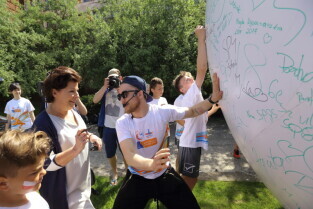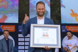 Gdańsk. Piknik siatkarski przed mistrzostwami Europy w siatkówce mężczyzn Eurovolley Poland 2017. Nz. Ambasador Mistrzostw Piotr Gacek.