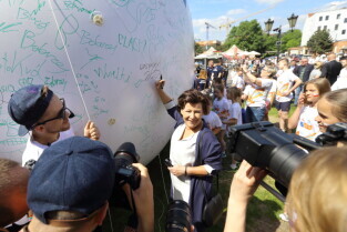 Gdańsk. Piknik siatkarski przed mistrzostwami Europy w siatkówce mężczyzn Eurovolley Poland 2017. Nz. Ambasadorka Mistrzostw Dorota Kolak.