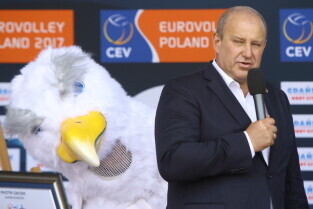 Gdańsk. Piknik siatkarski przed mistrzostwami Europy w siatkówce mężczyzn Eurovolley Poland 2017. Nz. Prezes PZPS Jack Kasprzyk.
