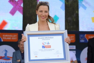 Gdańsk. Piknik siatkarski przed mistrzostwami Europy w siatkówce mężczyzn Eurovolley Poland 2017. Nz. Ambasadorka Mistrzostw Sylwia Gruchała.