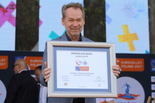 Gdańsk. Piknik siatkarski przed mistrzostwami Europy w siatkówce mężczyzn Eurovolley Poland 2017. Nz. Ambasador Mistrzostw Mirosław Baka.