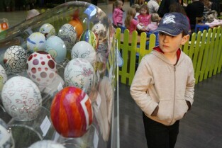 Akcja charytatywna - licytacja pisanek z jaj strusich - na rzecz Fundacji "Żyć z Pompą", która pomaga chorym dzieciom wymagającym używania pomp leczniczych, m.in. do żywienia pozajelitowego