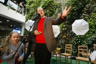 Akcja charytatywna - licytacja pisanek z jaj strusich - na rzecz Fundacji "Żyć z Pompą", która pomaga chorym dzieciom wymagającym używania pomp leczniczych, m.in. do żywienia pozajelitowego. Nz. Prezydent Gdańska Paweł Adamowicz z córką Antoniną