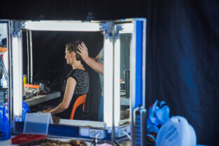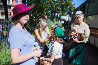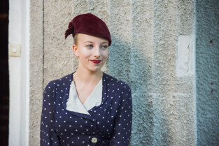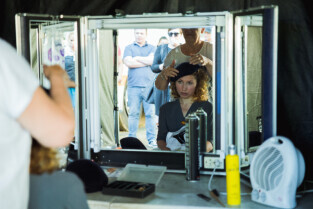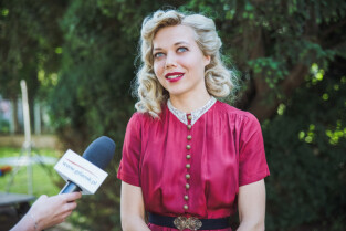 Gdańsk, ul. Małachowskiego 1. Plan zdjęciowy filmu "Kamerdyner". Nz. Marianna Zydek