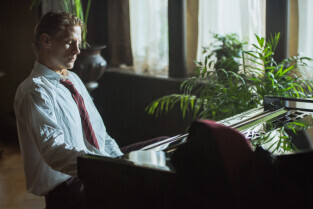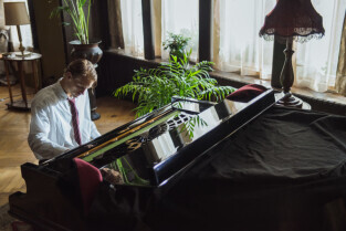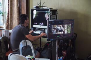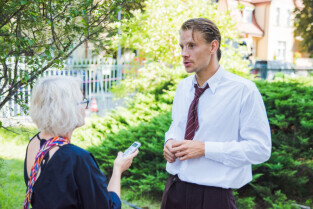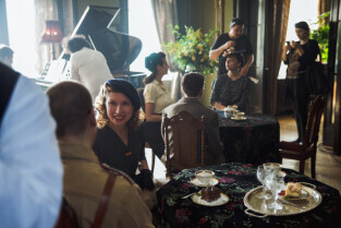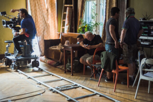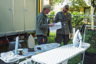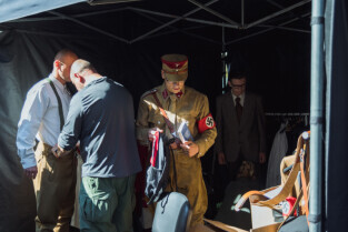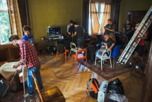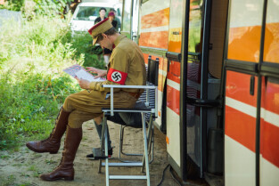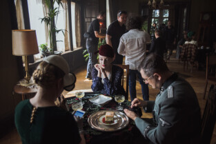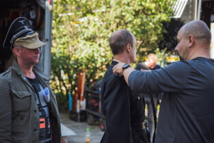 Gdańsk, ul. Małachowskiego 1. Plan zdjęciowy filmu "Kamerdyner". Nz. Sebastian Fabijański