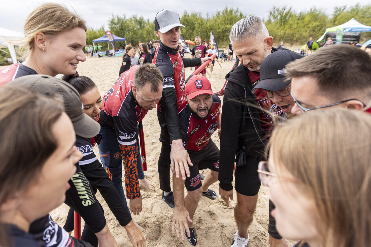 Gdańsk. Mimo deszczowej pogody na plaży na Stogach odbył się Plażowy Puchar Polski w Palanta, w którym udział wzięło 11 drużyn z całej Polski