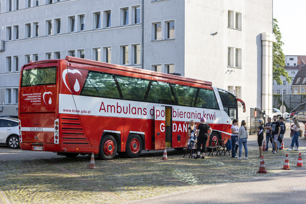 Gdańsk. Pod Urzędem Miejskim stanął ambulans do pobierania krwi. Wśród osób oddających tego dnia krew pojawili się Prezydent Aleksandra Dulkiewicz oraz jej zastępcy Piotr Borawski i Emilia Lodzińska