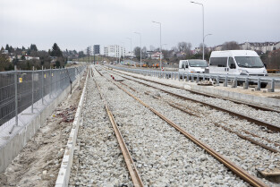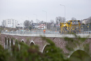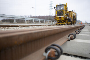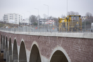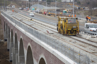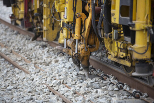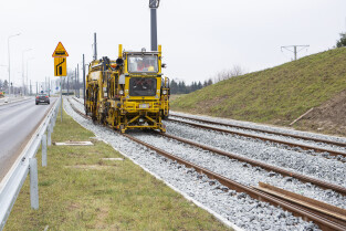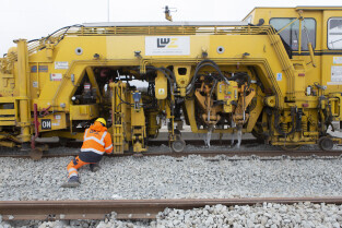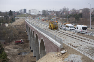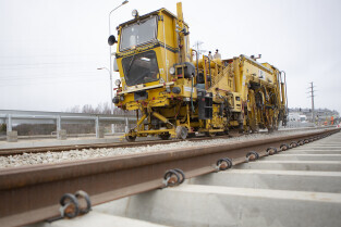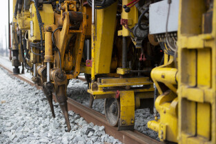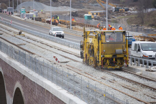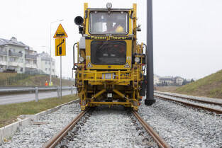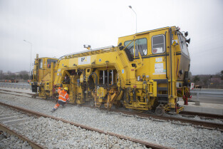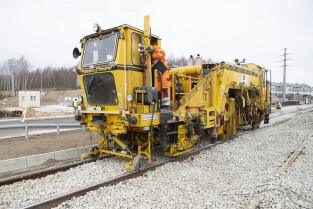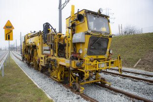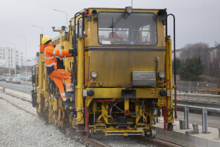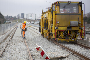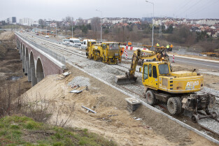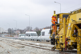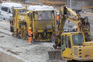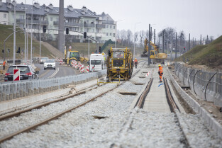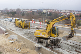Podbijarka torowa na budowie na al. Pawła Adamowicza w Gdańsku