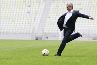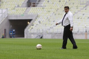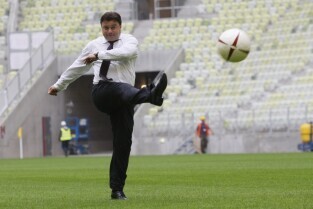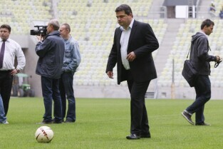 Wizyta podkomisji sejmowej ds. organizacji Euro 2012 na gdańskim stadionie PGE Arena. Nz. poseł Roman Kosecki