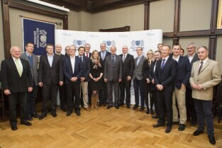 Politechnika Gdańska. Podpisanie Memorandum dla Projektu ACCUS pomiędzy miastem Gdańsk, Politechniką Gdańską, spółką InnoBaltica i Fundacją Interizon. Nz. Rektor Politechniki Gdańskiej prof. Henryk Krawczyk i Prezes Fundacji Interizon Przemysław Szleter (po prawej)