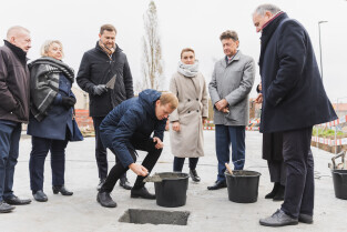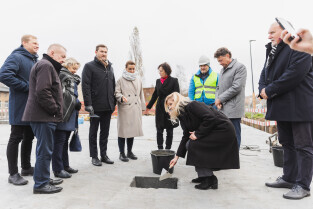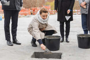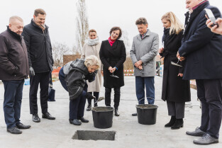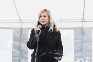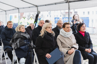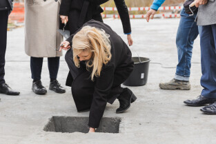 Gdańsk, ul. Ogińskiego. Podpisanie i wmurowanie aktu erekcyjnego pod budowę pięciu budynków: czterech mieszkalnych i jednego na cele społeczne. Nz. Monika Chabior, zastępczyni prezydenta Gdańska ds. rozwoju społecznego i równego traktowania