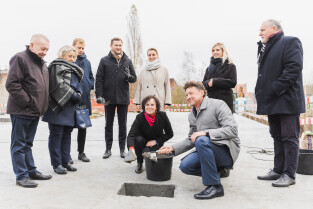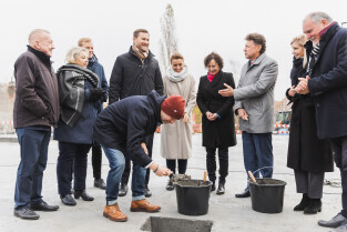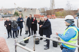 Gdańsk, ul. Ogińskiego. Podpisanie i wmurowanie aktu erekcyjnego pod budowę pięciu budynków: czterech mieszkalnych i jednego na cele społeczne.