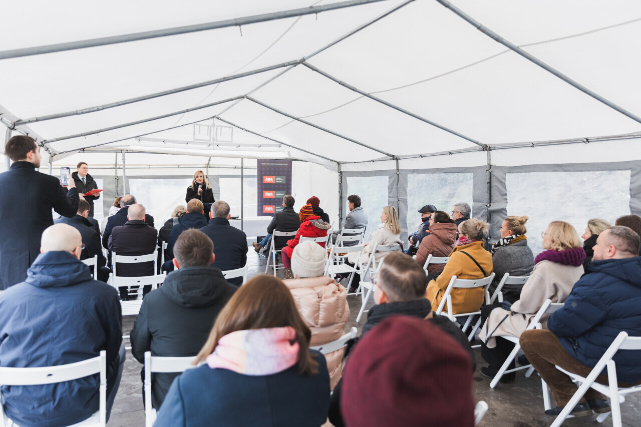 Gdańsk, ul. Ogińskiego. Podpisanie i wmurowanie aktu erekcyjnego pod budowę pięciu budynków: czterech mieszkalnych i jednego na cele społeczne.