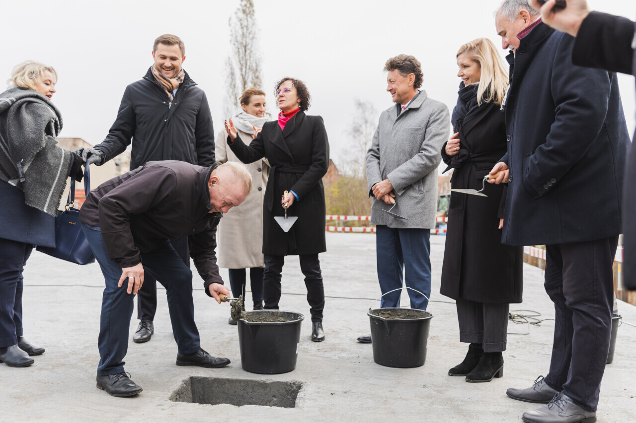 Gdańsk, ul. Ogińskiego. Podpisanie i wmurowanie aktu erekcyjnego pod budowę pięciu budynków: czterech mieszkalnych i jednego na cele społeczne.