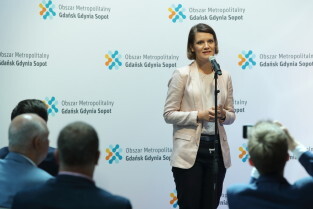 Żukowo. Podpisanie listu intencyjnego - Drogi dojazdowe do Obwodnicy Metropolitalnej. Nz. Wiceprezydent Gdyni Katarzyna Gruszecka-Spychała.