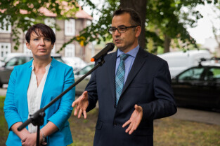 Gdańsk, ul. Plac Wałowy. Podpisanie umów o dofinansowanie projektów rewitalizacyjnych. Nz. Marszałek Województwa Pomorskiego Mieczysław Struk
