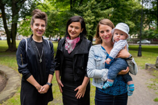 Gdańsk, ul. Plac Wałowy. Podpisanie umów o dofinansowanie projektów rewitalizacyjnych. Nz. Iwona Woźniewska i Katarzyna Werner - Stowarzyszenie 180 stopni i po środku, Aleksandra Przyk BRG