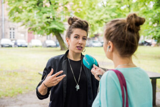 Gdańsk, ul. Plac Wałowy. Podpisanie umów o dofinansowanie projektów rewitalizacyjnych. Nz. Iwona Woźniewska - Stowarzyszenie 180 stopni