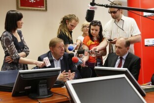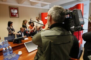 Urząd Miejski w Gdańsku. Podpisanie umowy na dofinansowanie Trasy Sucharskiego pomiędzy Miastem Gdańsk, a Centrum Unijnych Projektów Transportowych. Nz. od lewej: Prezydent Gdańska Paweł Adamowicz, Z-ca Prezydenta Gdańska Andrzej Bojanowski