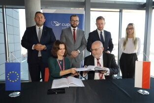 Gdańsk. Uroczyste podpisanie umowy na dofinansowanie zintegrowanego biletu dla Pomorza. Nz. Umowę podpisują: Joanna Lach, p.o. Dyrektora CUPT i Krzysztof Rudziński, Prezes InnoBaltica.
