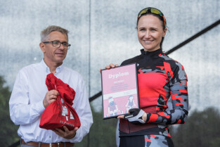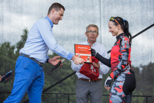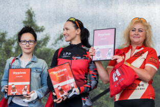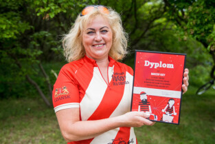 Gdańsk. Park im. Ronalda Reagana. Podsumowanie kampanii "Kręć kilometry dla Gdańska - European Cycling Challenge". Nz. Pani Marzena Koza